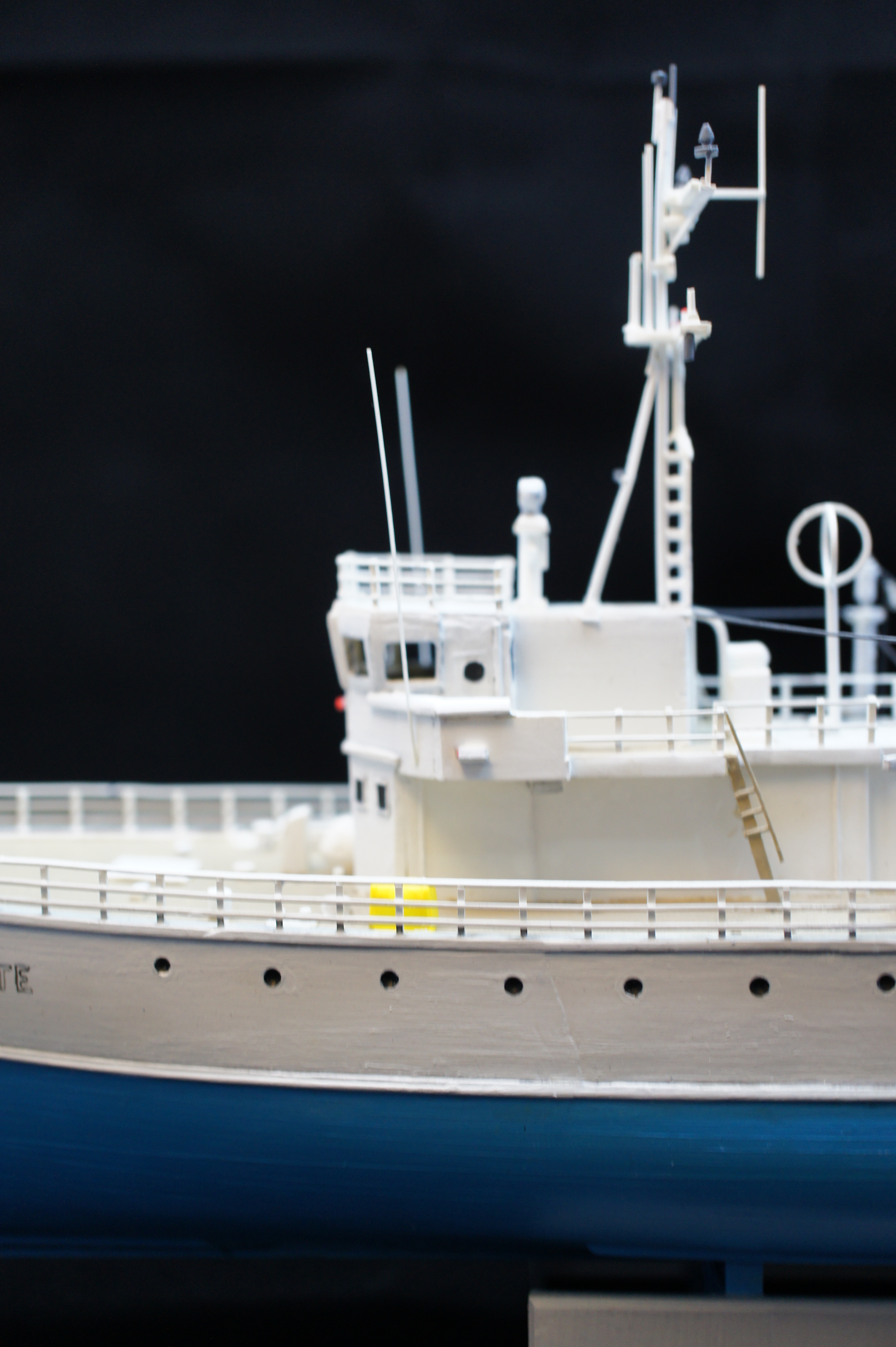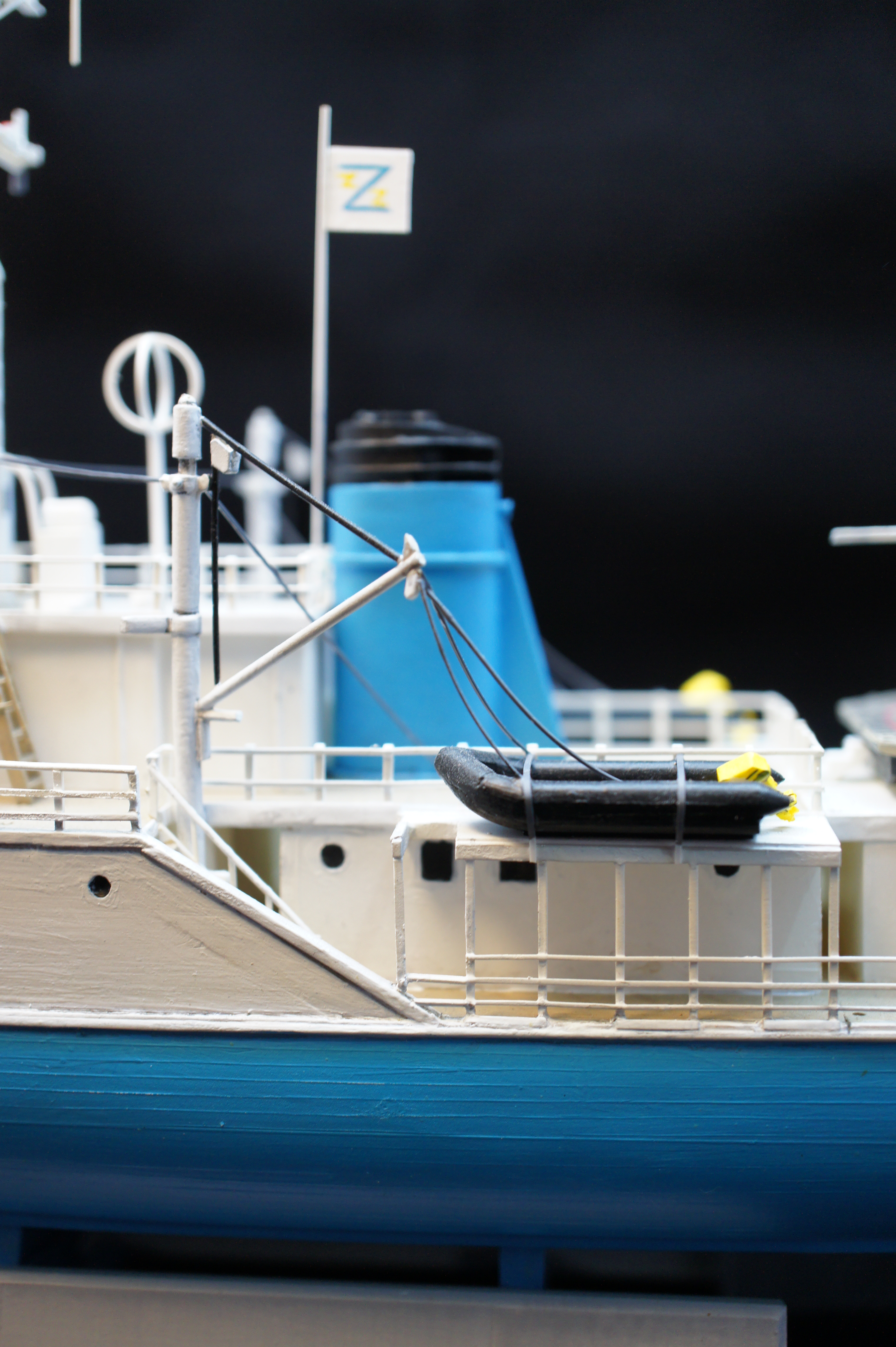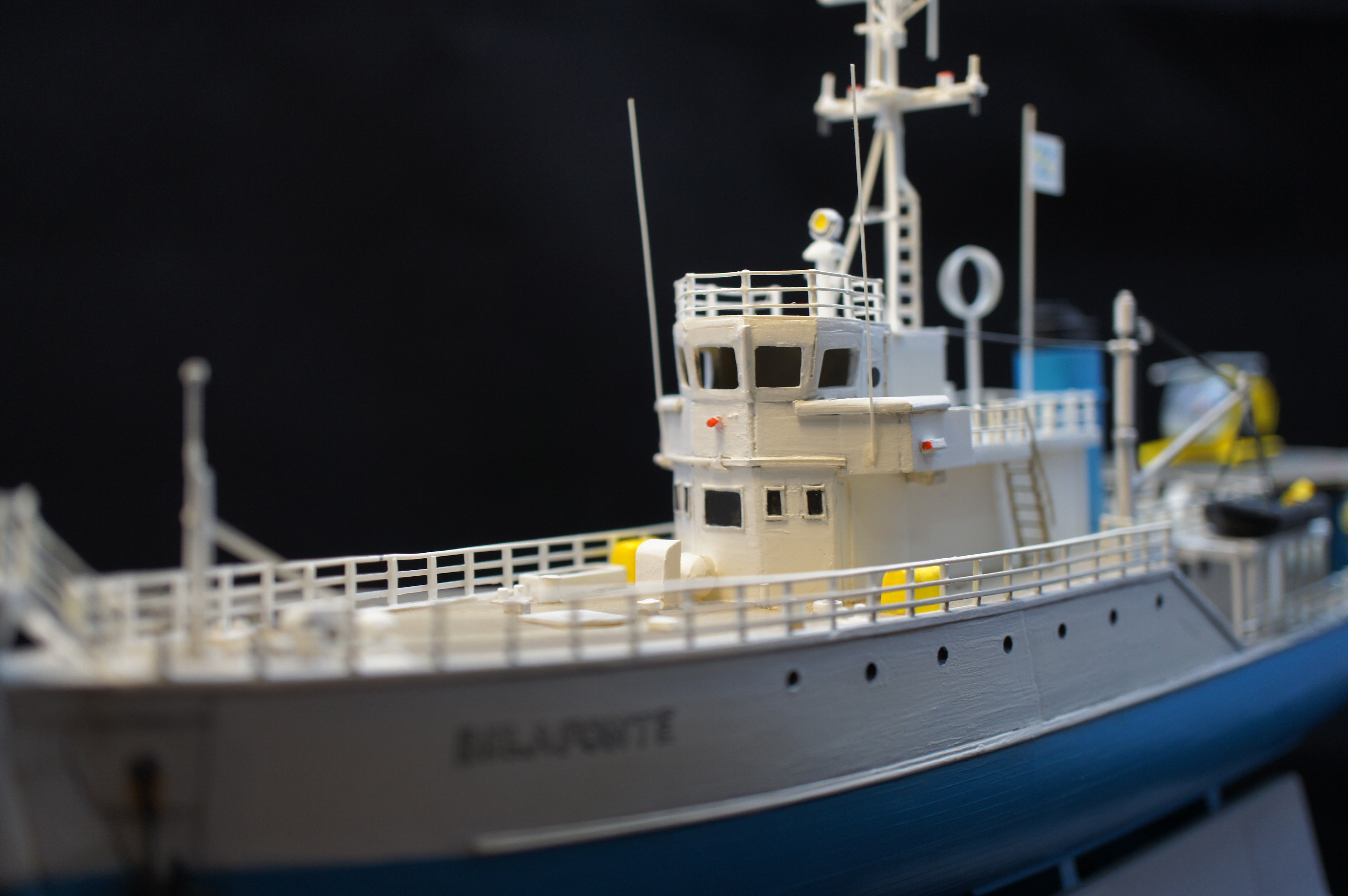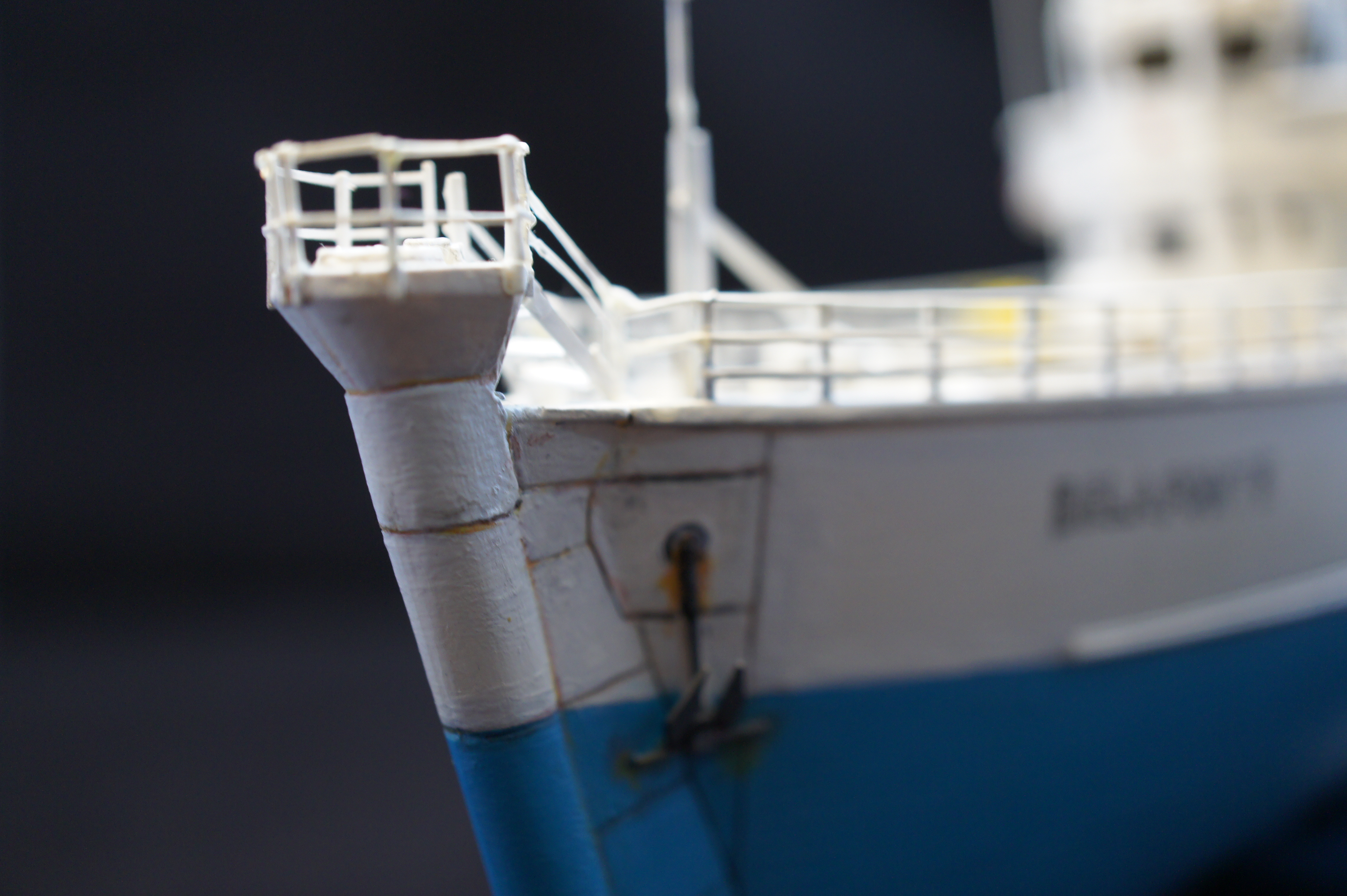 For a while I have neglected to take any decent photos of my model of the Belafonte. I thought i would have a go at doing some good pictures using a Sony NEX3 and a photo light box thing I bought recently from ebay. The photos aren’t bad but I realise there are few areas I went wrong, and plus I never really finished it. There are no life rings and no crew!