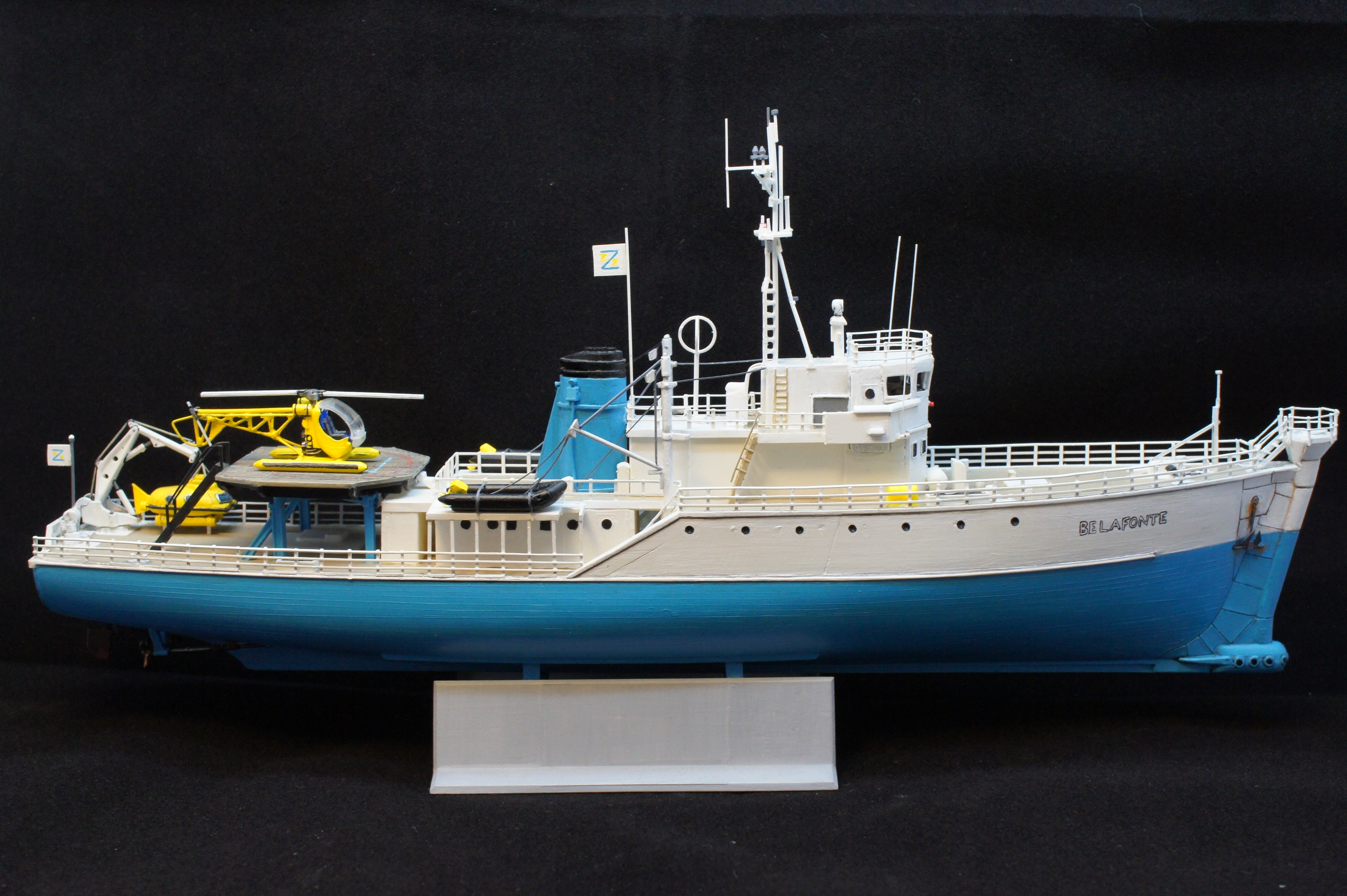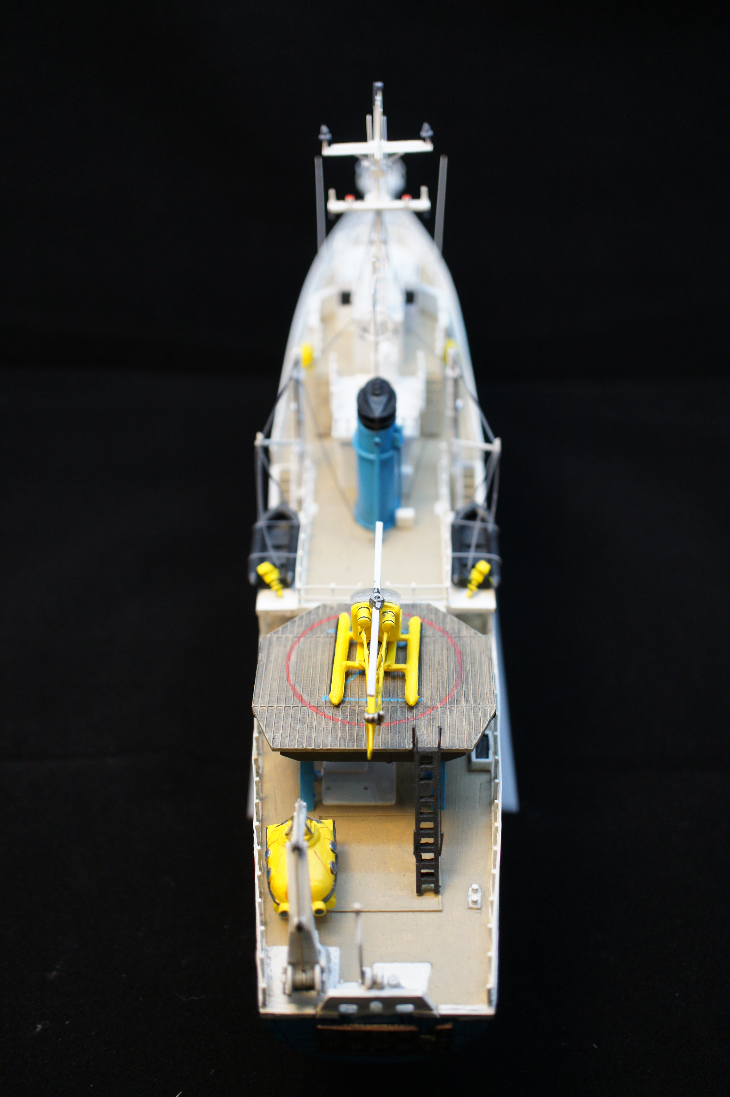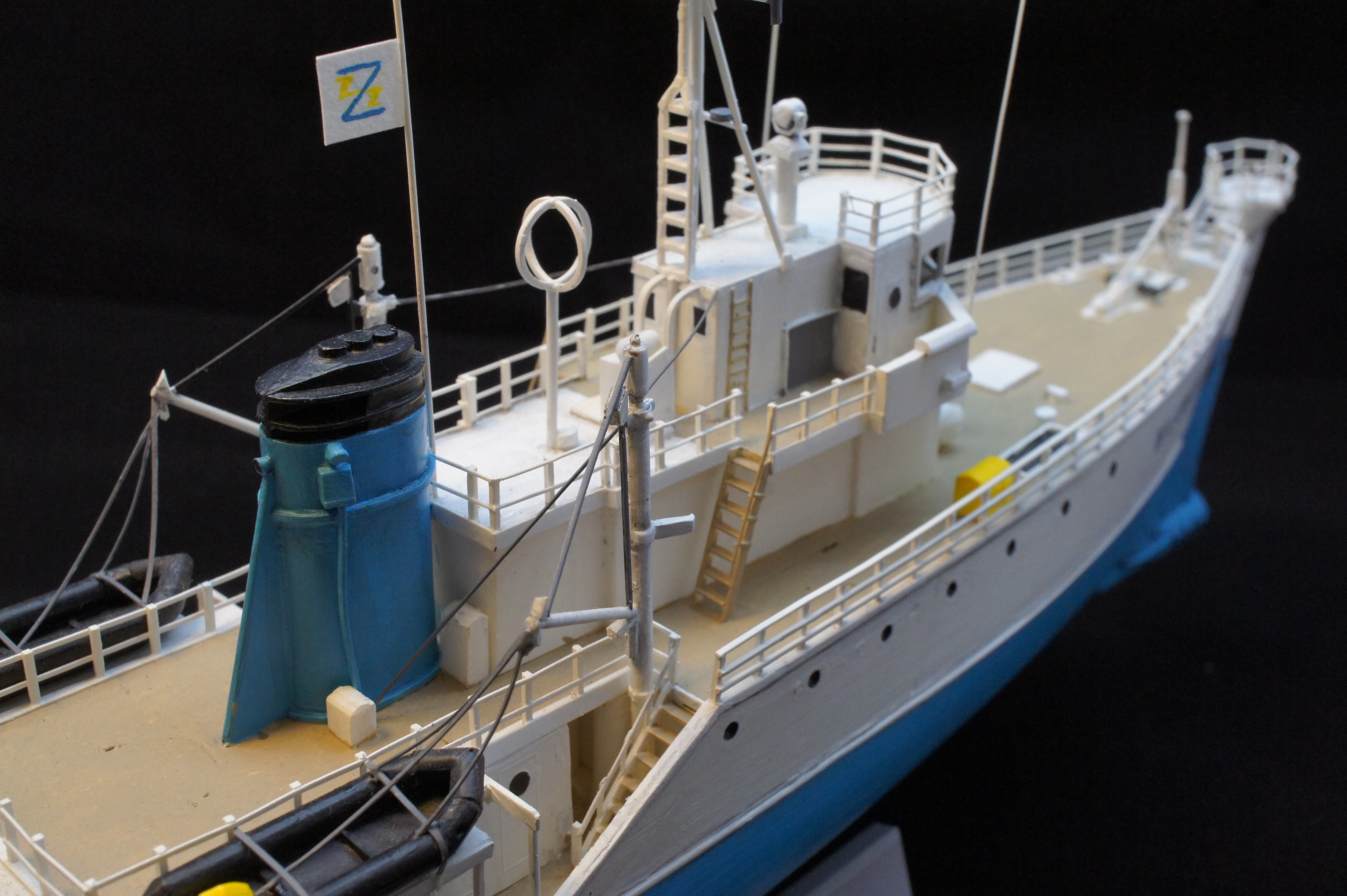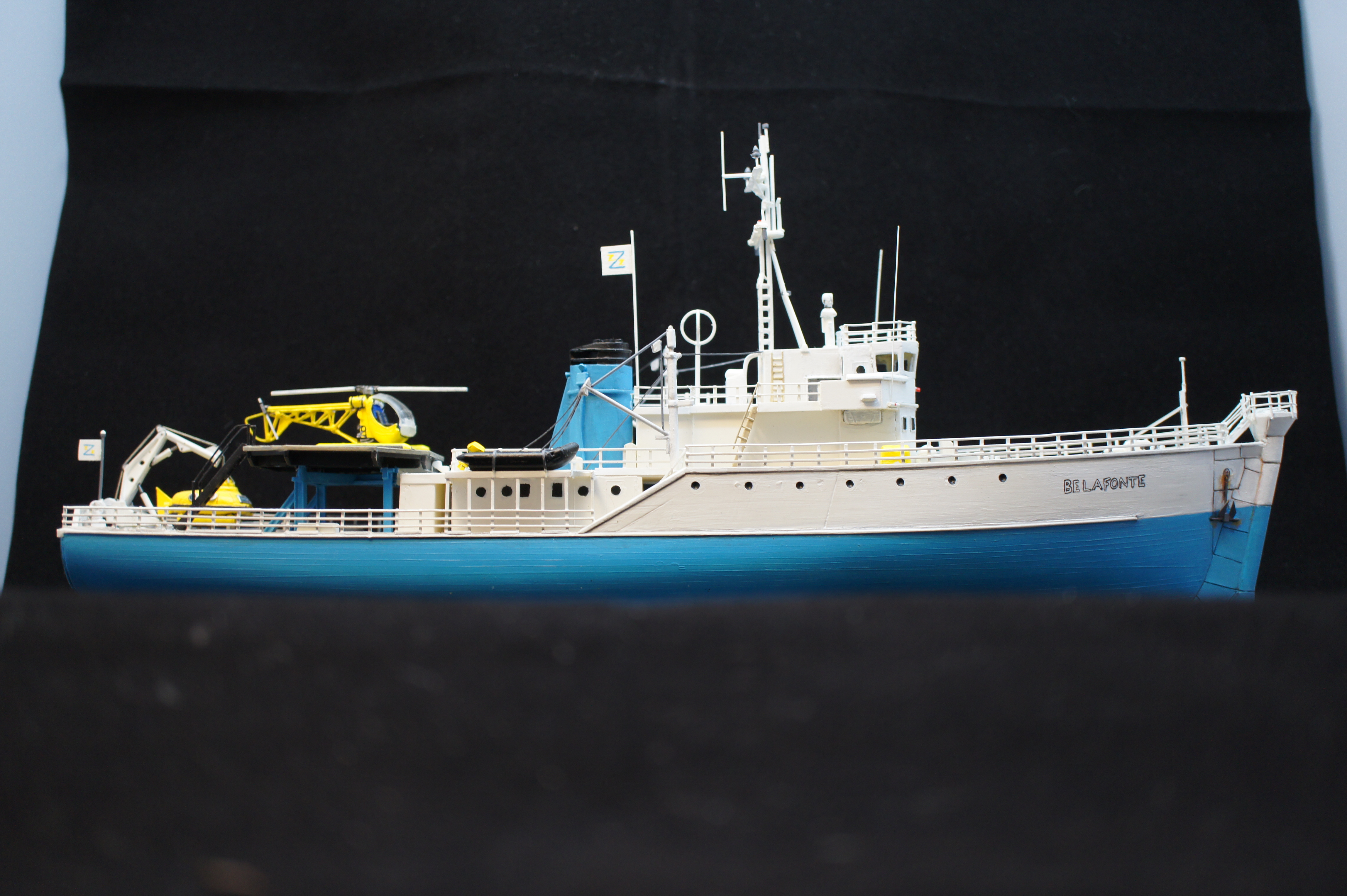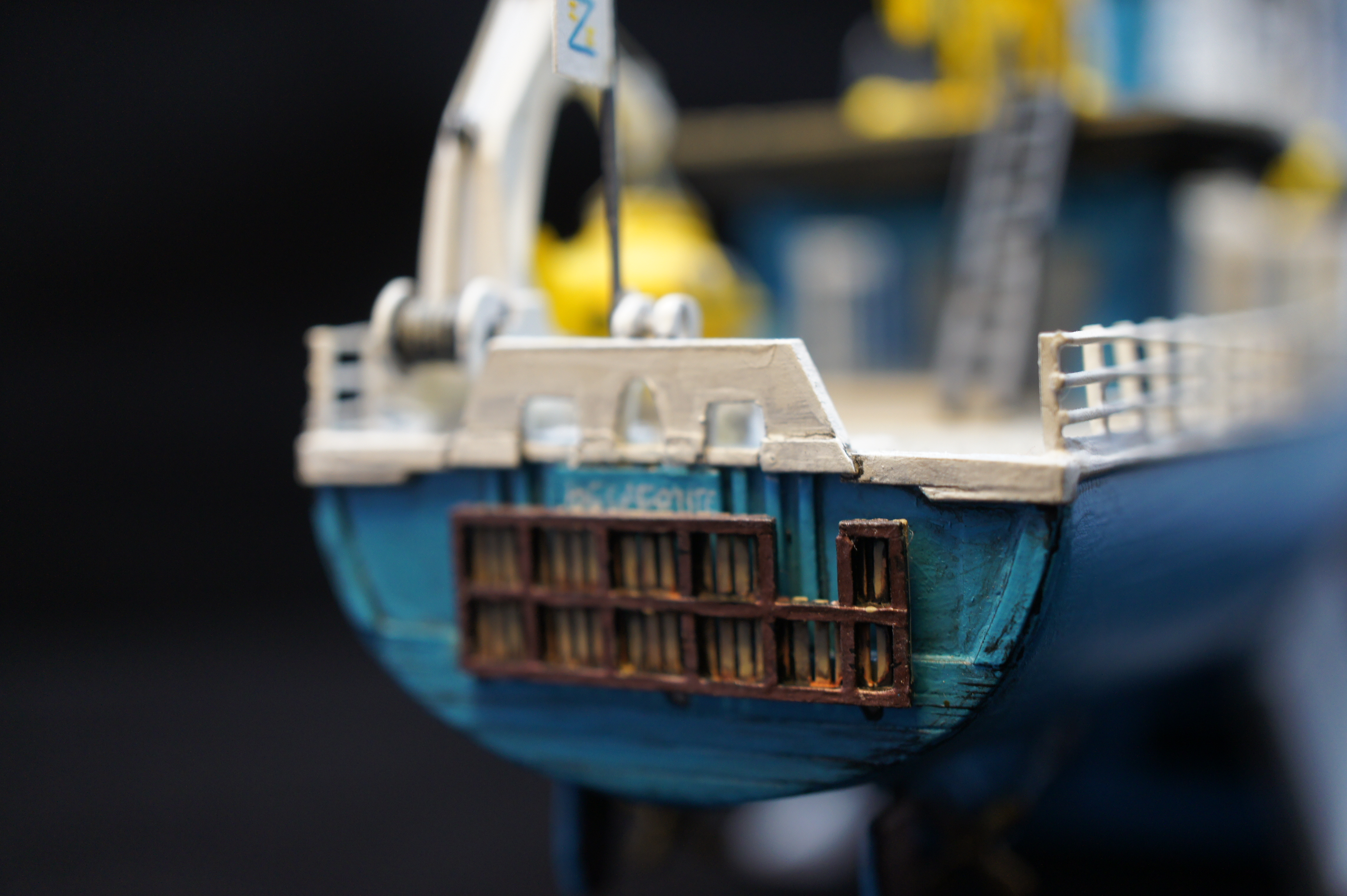 For a while I have neglected to take any decent photos of my model of the Belafonte. I thought i would have a go at doing some good pictures using a Sony NEX3 and a photo light box thing I bought recently from ebay. The photos aren’t bad but I realise there are few areas I went wrong, and plus I never really finished it. There are no life rings and no crew!